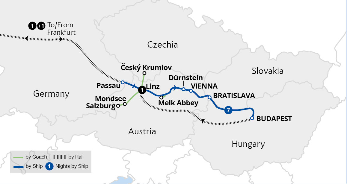 Enjoy a leisurely cruise through four countries and three capital cities, basking in beautiful river scenery all the way. Sail from the German town of Passau through the Austrian wine-growing region of the Wachau Valley, admiring picturesque Dürnstein and Melk Abbey enroute. After exploring imperial Vienna, the captivating Hungarian capital...